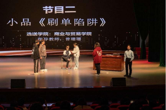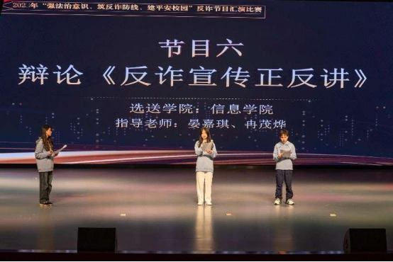 今年以来,针对电信网络诈骗易发、高发的情况,学校成立以学生为主体的反诈宣传队,在做好校园内宣传的同时,服务社会,开展校外反诈宣传,不断提高反诈宣传的参与度、精准性和覆盖面。比赛中,来自5个学院的10个节目,用近年频发的各类诈骗典型案例,以相声、小品、情景剧、快板的形式展现在舞台中,让反诈宣传形式更加有趣。经过评委组,比赛最终评出节目一等奖1个,二等奖2个,三等奖3个,并评选了比赛的优秀节目奖和优秀组织奖。