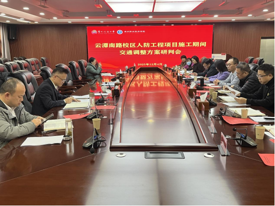 为确保云潭南路校区人防工程有序推进,解决施工期间的校园交通、停车及安全问题。12月4日,我校召开云潭南路校区人防工程施工期间交通调整方案研判会。校党委常委、副校长周勇出席会议,保卫工作部、后勤处、办公室、宣传部、学工部、网络中心、图书馆,公共基础部及各二级学院主要负责人参会。